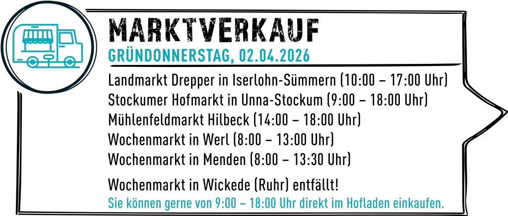 Öffnungszeiten unseres Hofladens und Standzeiten der Wochenmärkte in der Osterwoche …