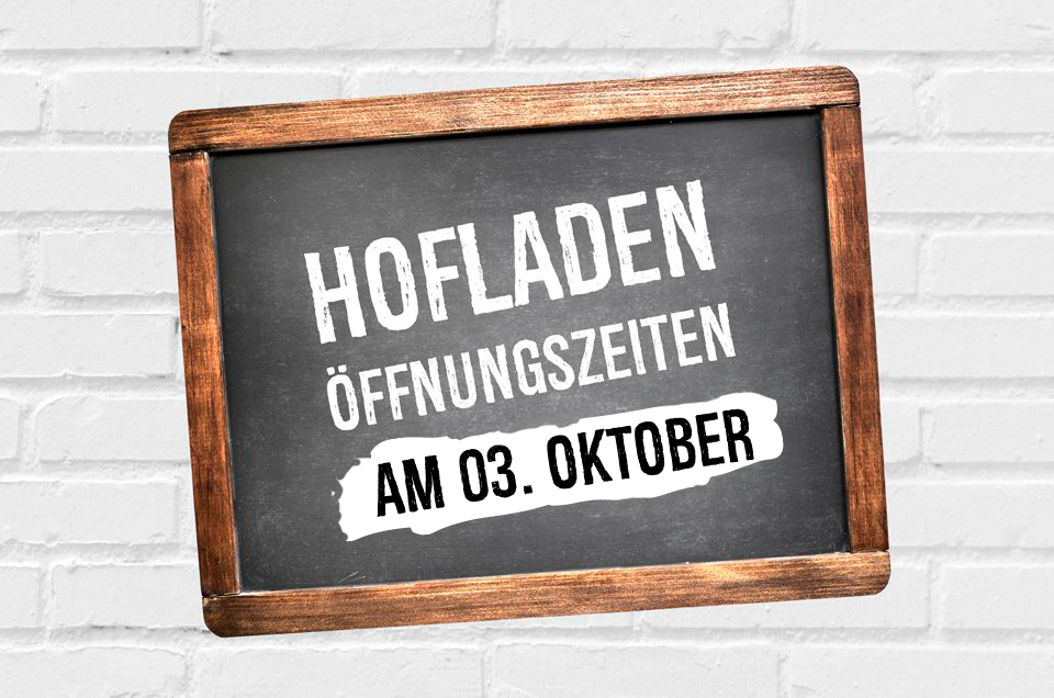 Der Tag der Deutschen Einheit rückt nun schnell näher. Gerne möchten wir Sie darüber in Kenntnis setzen, dass sich die Öffnungszeiten unseres Hofladens an diesem Feiertag ändern.